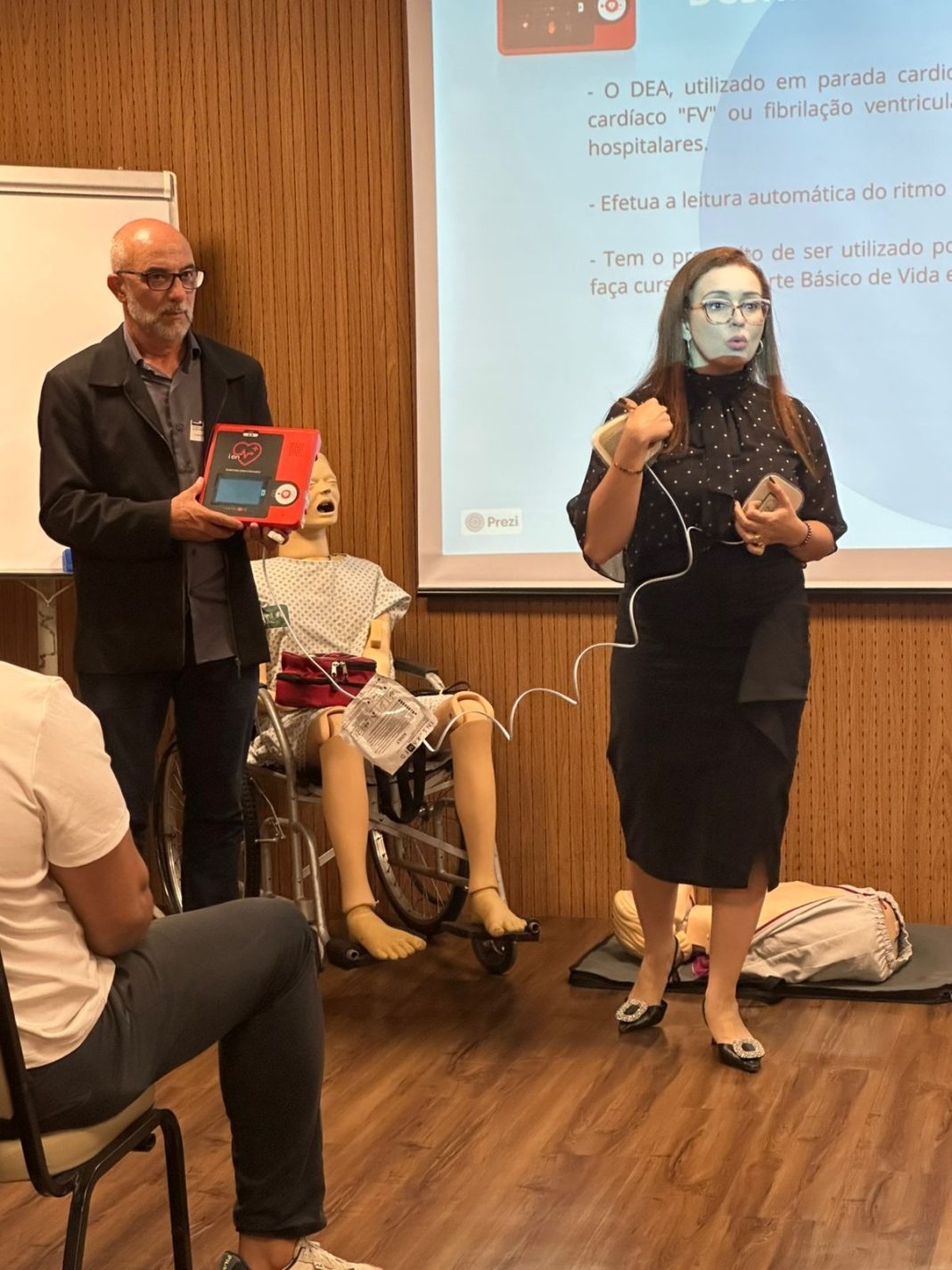 Na última segunda-feira (29/09), cerca de 30 profissionais de diversos segmentos de Cachoeiro de Itapemirim participaram de um treinamento promovido pela Unimed Sul Capixaba sobre o uso do Desfibrilador Externo Automático (DEA) e atendimento em situações de parada cardiorrespiratória. A atividade, realizada no auditório do Hospital, acontece anualmente e tem como objetivo capacitar pessoas que não são da área da saúde a prestar socorro imediato em casos de emergência.